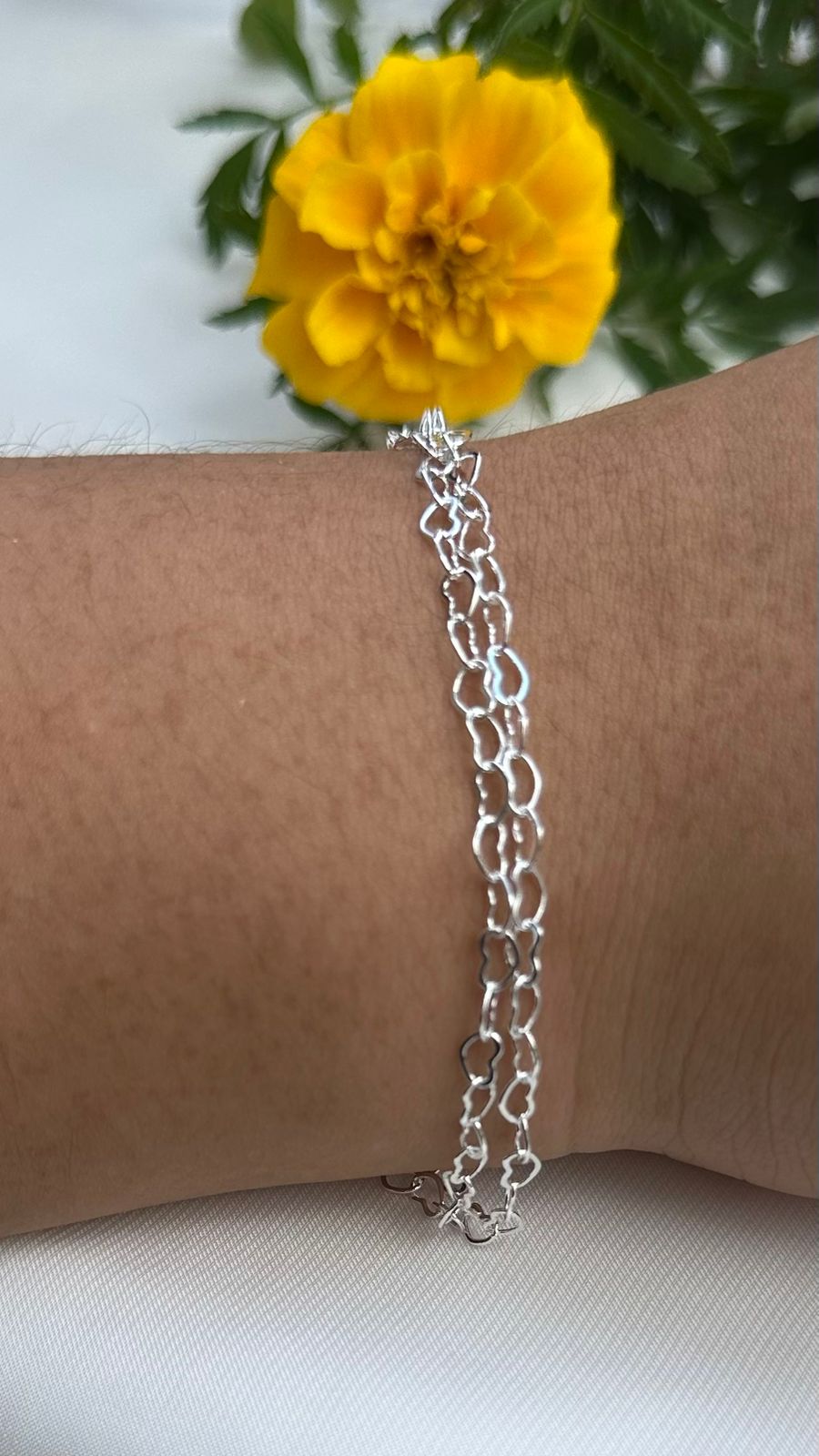 Pulseira banhada a prata corrente de coração duplo minimalista